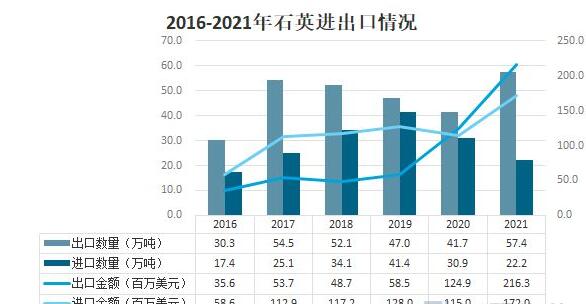 2016-2021年石英進(jìn)出口情況